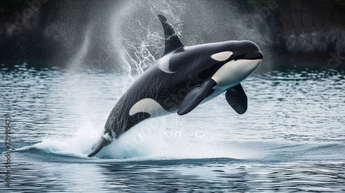 © Laura, Obraz premium An orca leaps through the ocean's waves