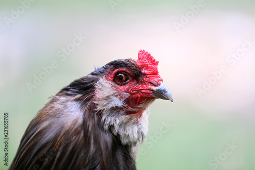 Naklejka premium An ornamental hen is an attraction on the farm.