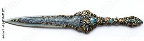 Fototapeta premium An ornate knife featuring intricate designs and turquoise accents, perfect...