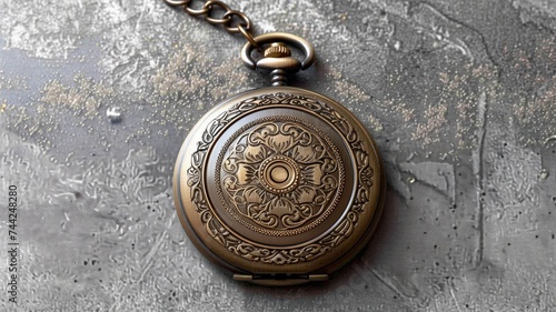 Fototapeta premium An ornate vintage pocket watch on a textured background