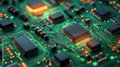 © Hovhannes, Obraz premium An orthographic flat photograph of a circuitboard.