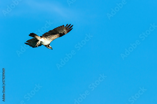 Fototapeta premium An Osprey flying in the blue sky.