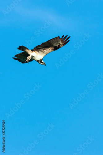 Fototapeta premium An Osprey flying in the blue sky.