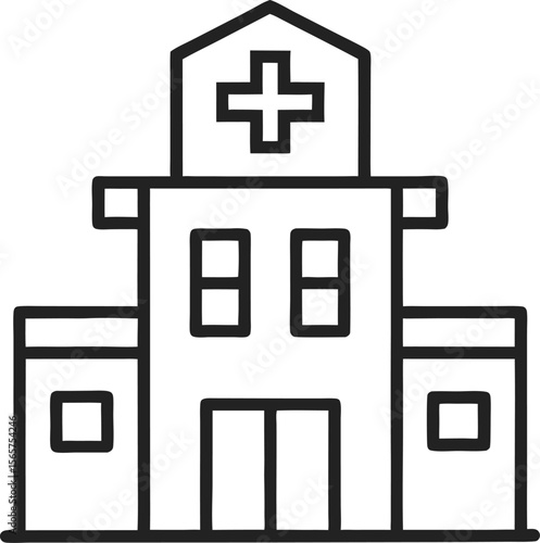 © Sharea, Obraz premium An outline icon hospital building with a cross with white background.