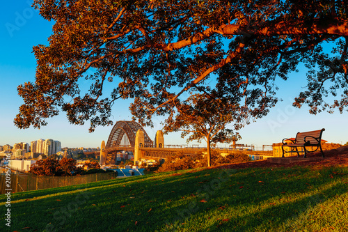 Fototapeta premium An overlooking view of Sydney’s Harbour Bridge from Sydney Observatory