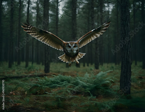 © Turgut, Fototapeta premium an owl that flies silently after its prey