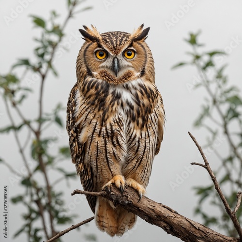 © Khalid, Obraz premium An owl with glasses and a small book in its talons, giving off a scholarly vibe on a plain white backdrop.