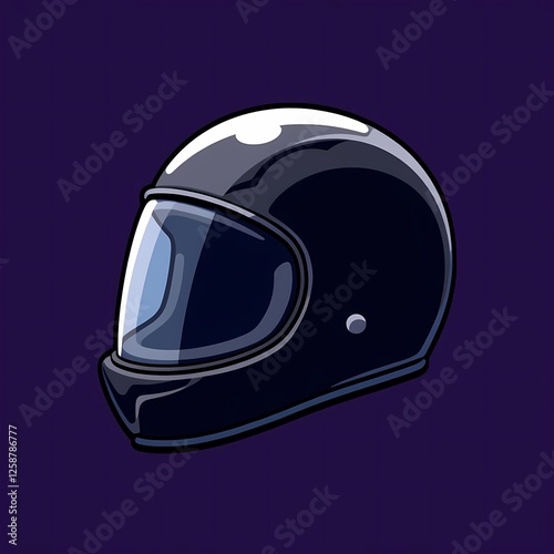 © Valerii, Fototapeta premium An retro image of a black helmet with a transparent body. The background is a deep purple color, adding depth and contrast.