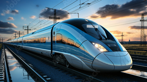 Naklejka premium an ultra-modern passenger train runs on tracks and transports passengers