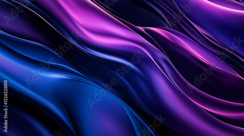 © Muqadas, Obraz premium An ultra-smooth, abstract background featuring soft, flowing waves in a blend of deep blue and violet hues. The waves have a silky, glossy appearance with a subtle glow, creating an elegant and modern