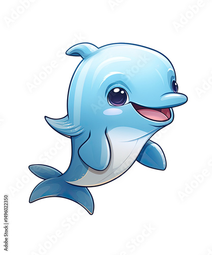 © Asif, Naklejka premium An underwater cartoon illustration of wild marine life, featuring a blue swimming shark, whale, dolphin, and fish