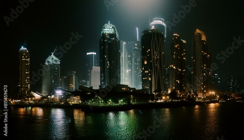 Fototapeta premium An underwater metropolis lit by bioluminescent creatures , bustling with...