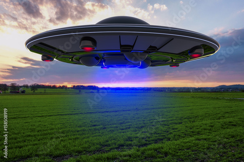 © rtype, Fototapeta premium An unidentified flying object floats over the ground