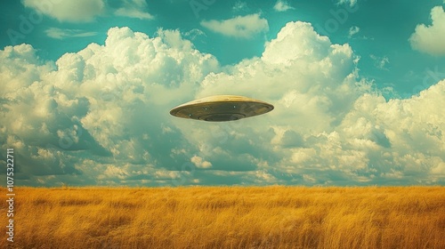 Fototapeta premium An unidentified flying object resembling an alien saucer remains motionless...