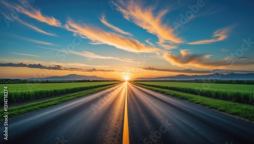 © CryptoCanvas, Naklejka premium An unoccupied road and sky gazing toward the horizon.