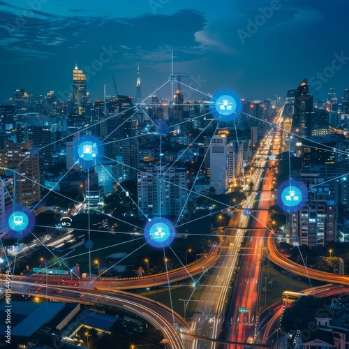 © Iftikhar alam, Fototapeta premium An unoccupied room with a wooden floor and multiple windows, The nerve center of a smart city, where decisions are made and resources are managed efficiently