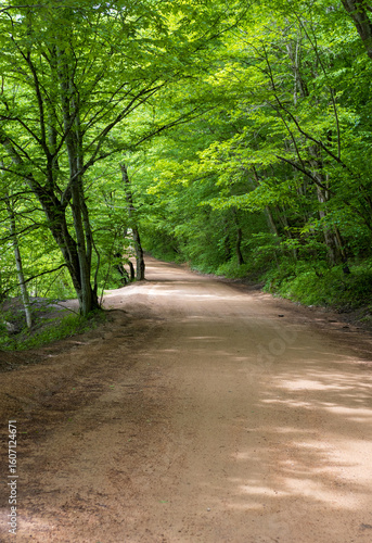 Fototapeta premium an unpaved road in the spring in a wooded area walking on a sunny day