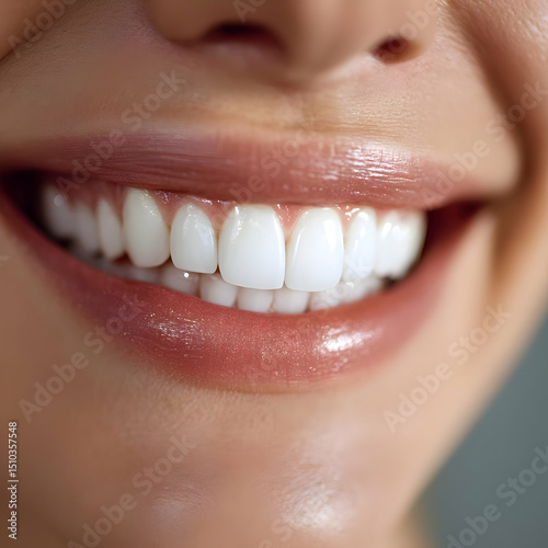 © sornram, Obraz premium An up-close image of a beautiful smile featuring bright white teeth and healthy lips. This image captures the essence of confidence and happiness.
