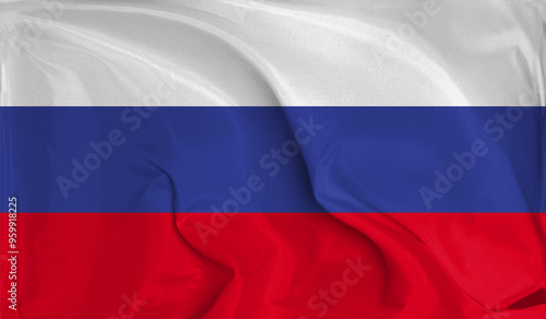 © Lutfar, Fototapeta premium An up close view of Russia flag flying textures