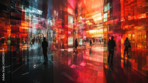 © Timeless Touch, Obraz premium An urban landscape crafted from mirrors, where light dances across surfaces, creating mesmerizing reflections that captivate the viewer.