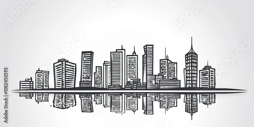 Naklejka premium An urban sketch of a bridge over a river with cityscape in the background