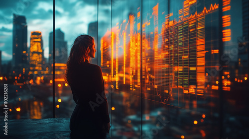 © Anastasia, Fototapeta premium Analysts brainstorming about revenue strategies with charts projected onto glass walls.