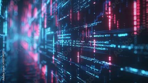© Oleksandr, Obraz premium Analytics Data Visualization. Futuristic Hologram Interface with Binary Graphs on Digital Map