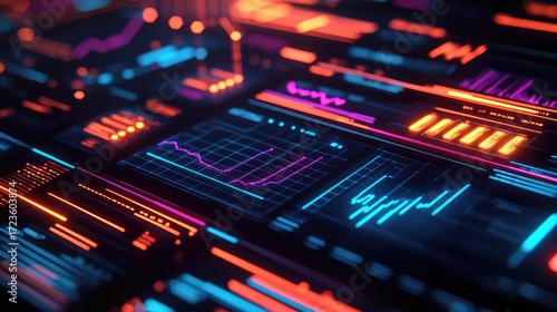 © vectorwin, Obraz premium analytics neon glow style property dashboard simulation