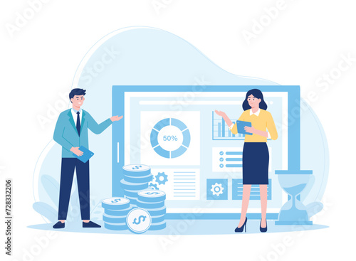 © Kinn Studio, Obraz premium analyze the growth process of online investment concept flat illustration