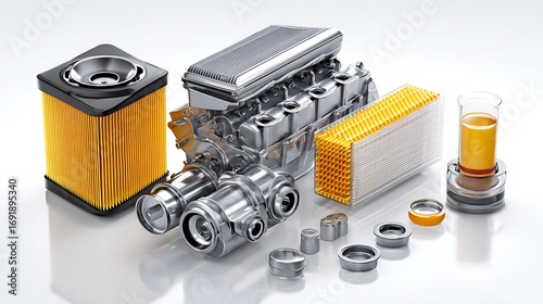 Fototapeta premium Analyzing Car Engine Components Oil and Air Filters for Maintenance
