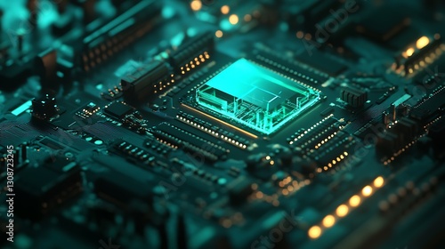 Fototapeta premium Analyzing Futuristic Circuit Board with Glowing Electronic Components Close Up