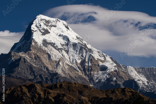 © Roberto, Fototapeta premium Anapurna Sur, detalle de pico al atardecer. belleza y naturaleza. Paisajes increíbles