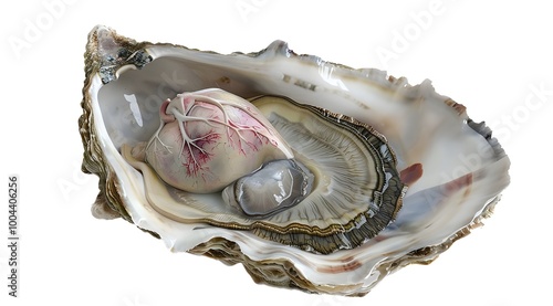 © Md Akter Hossen, Naklejka premium Anatomy cross section showing heart and eyes inside an oyster, on a white background