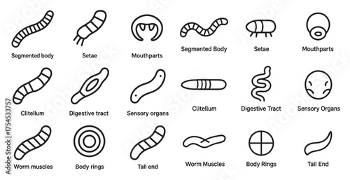© Viacheslav, Naklejka premium Anatomy outline icons set – segmented, digestive, biology and structure symbols