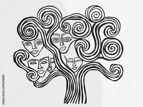 © LM, Naklejka premium Ancestor Worship: A Single-Line Tribute to Lineage