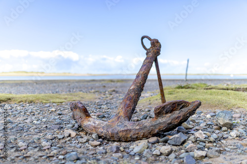 Fototapeta premium Anchor on the estuary at Ravenglass in Cumbria, England, United Kingdom