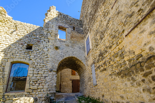 © Marina, Fototapeta premium Ancien bâtiment en pierre avec arc de village de Lurs, Provence, France.