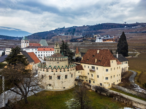 © Nicola Simeoni, Obraz premium Ancient abbey of Novacella. Top view.
