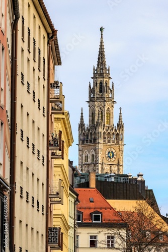 Fototapeta premium Ancient and historical clock tower in the city with intricate architectural designs