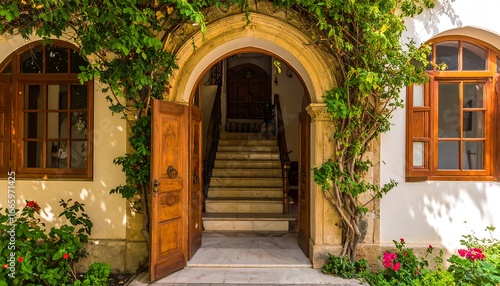 © Mata, Fototapeta premium Ancient arched doorway, overgrown with vines