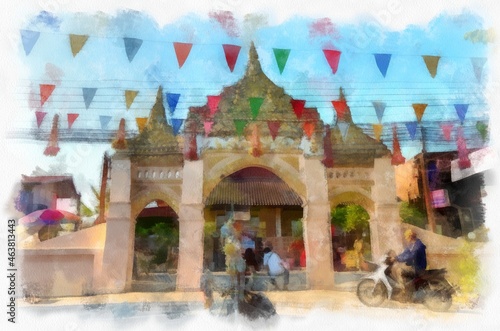 Obraz premium Ancient architecture of Thailand watercolor style illustration impressionist painting.