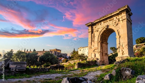 © Kian, Fototapeta premium Ancient archway at sunset over ruins
