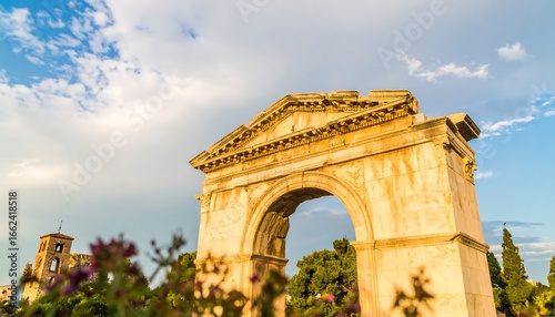© raisa, Fototapeta premium Ancient archway under a partly cloudy sky