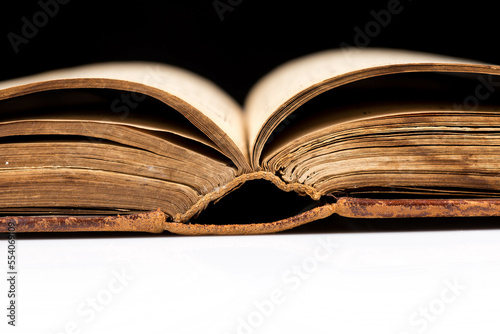 © VertigoBarrov, Fototapeta premium ancient book shot on black background