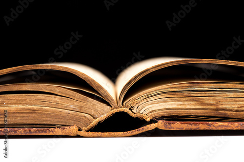 © VertigoBarrov, Fototapeta premium ancient book shot on black background