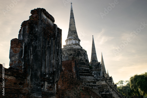 Fototapeta premium Ancient Brick Wall and Three Chedis of Wat Phra Si Sanphet