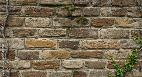 Obraz premium Ancient Brick Wall with Moss and Vines Creates Rustic Texture