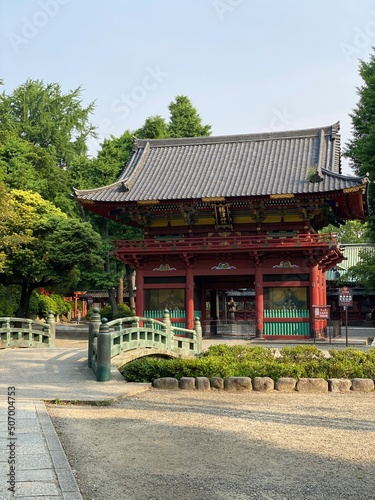 © KAYO SUGIUCHI, Fototapeta premium Ancient bridge that leads to the pagoda of Japanese shrine “Nezu”, downtown Tokyo year 2022 May 20th