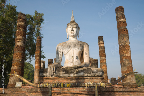 Fototapeta premium ancient buddha image statue at Sukhothai historical park