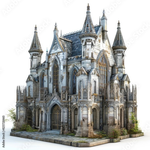© Vlad, Fototapeta premium Ancient Building. 3D Render of Gothic Architecture Isolated on White Background